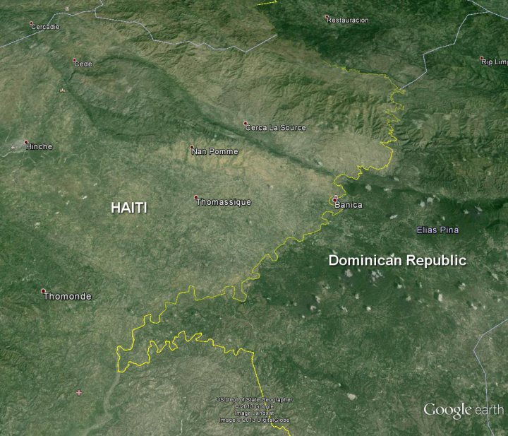 UPDATE2: I wanted independent confirmation of the photo in Figure 1, because that could have been just one local patch given the small scale of the photo. So, I decided to check it out on Google Earth. While the entire border between Haiti and the Dominican Republic is not like Figure 1, there are large swaths in the northern part which are, for example: