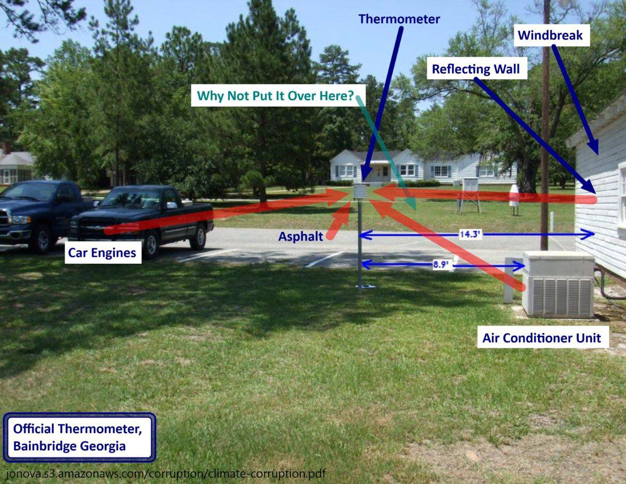 See other examples below of poor placement of temperature reporting stations from “Is the Western Climate Establishment Corrupt?” The public might not understand the science, but they do understand cheating, Dr. David Evans, 11 Nov 2010 (last updated 28 Feb 2011) Web Address: jonova.s3.amazonaws.com/corruption/climate-corruption.pdf
