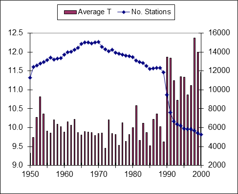 Truth: Remember that there is no such thing as a global temperature. It is the average of all of the reporting stations all over the world. The rapid rise in temperatures in the 1990s directly coincides with a decrease in the number of Siberian weather stations reporting due to the break-up of the Soviet Union.